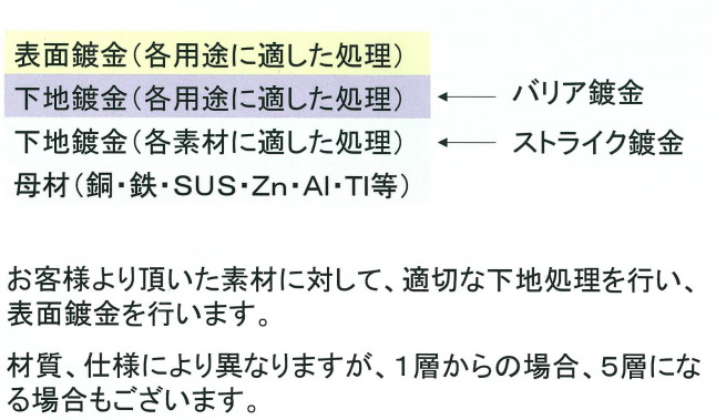 めっき例 金、銀、パラジウム、ニッケルパラジウム、パラジウムコバルト、ロジウム、白金
