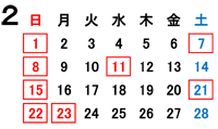 | 【2026年2月 営業日】 |